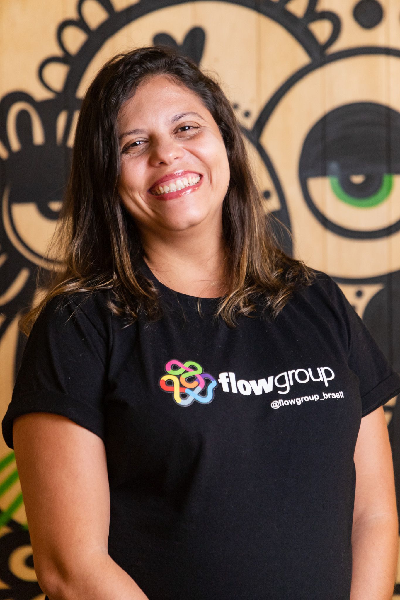 De Maricá, no Rio de Janeiro, Angélica completa o time de desenvolvimento da Flow Brasil, que segue no formato híbrido, com pessoas em São Paulo, Volta Redonda, Campinas e Belo Horizonte, se conectando online nas propostas, diagnósticos, planos de aula e entregas, assim como presencialmente, em treinamentos nos clientes.